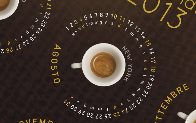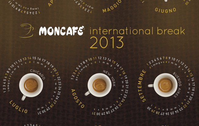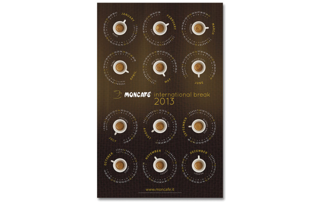Moncafè Torrefazione industriale - Faggiano (TA) Moncafè accompagna il tuo anno con vivacità e modernità. Il calendario 2013 gioca con il tempo e i fusi orari per portarvi in giro per il mondo.